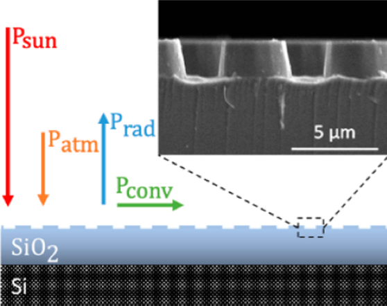 Passive radiative cooling of silicon solar modules with photonic silica microcylinders